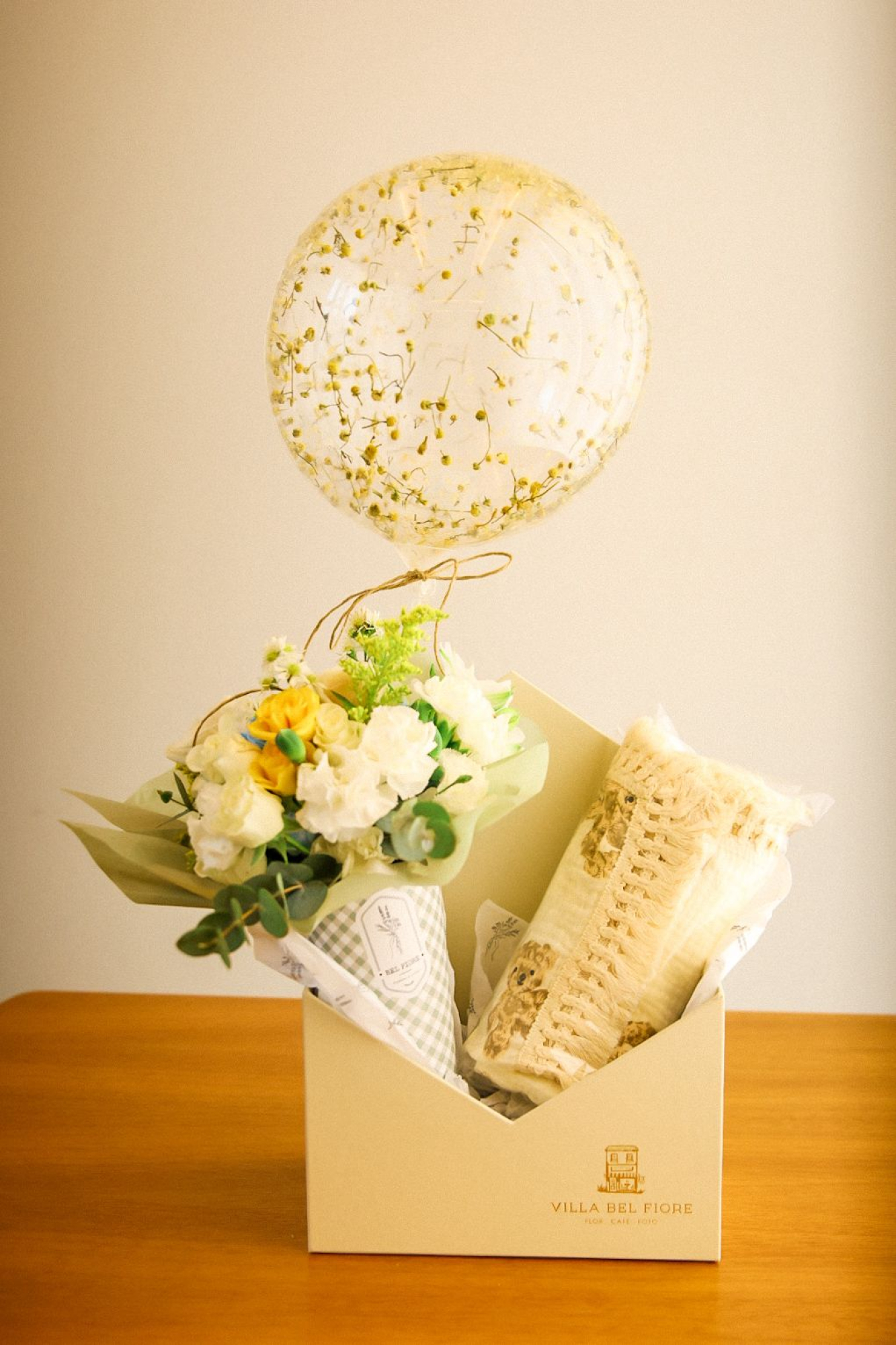 Um presente que encanta a mamãe e o bebê recém chegados! Flores e mimos cheios de fofura!