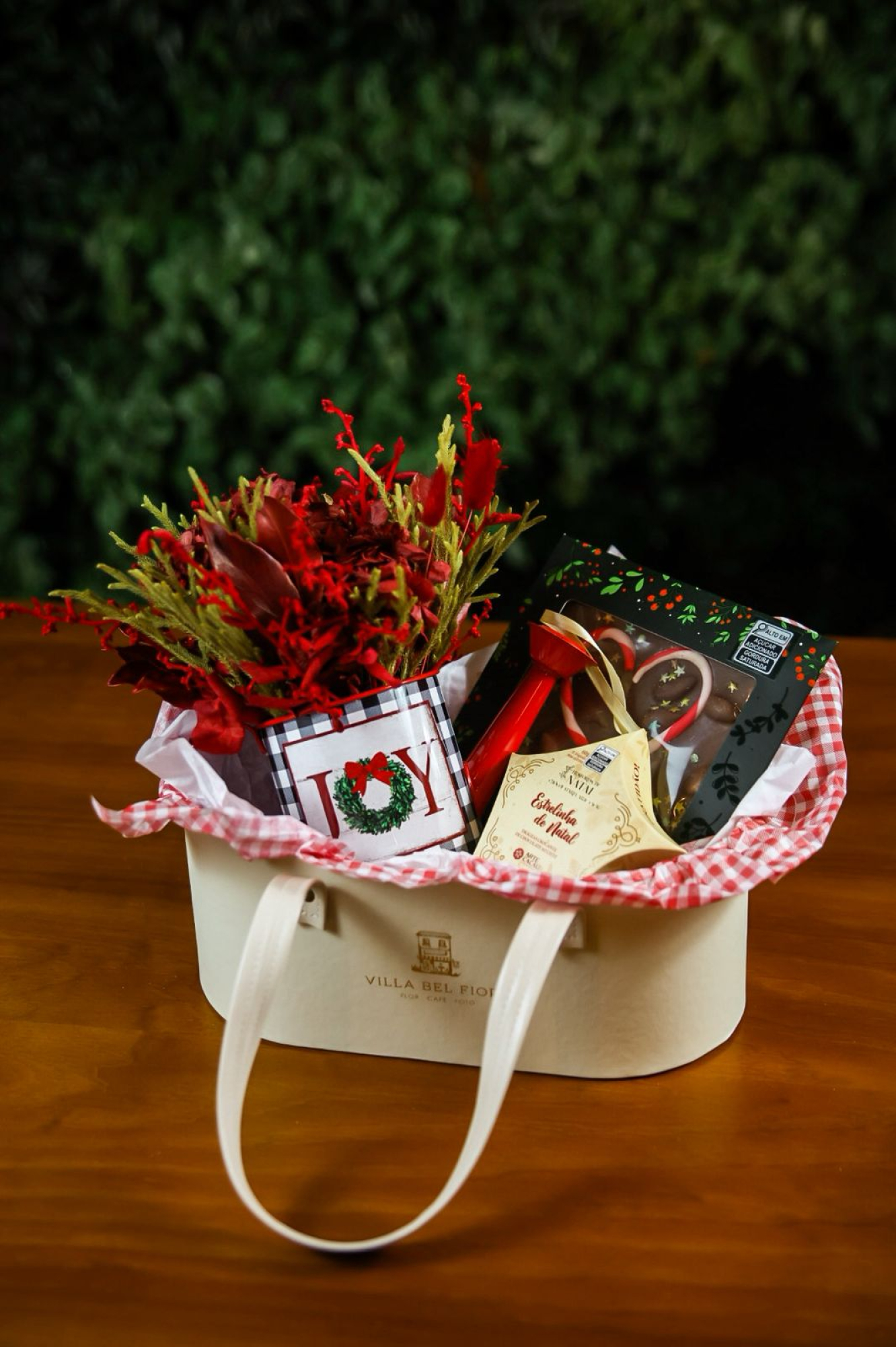 Montada em nossa sofisticada caixa oval com alça em couro, esta box traz um toque festivo e cheio de charme. Inclui um arranjo de flores desidratadas no regador natalino de metal “Joy”, uma estrelinha de Natal com drágeas de chocolate ao leite e um cartão-postal de chocolate ao leite com amêndoas. Um presente que celebra o Natal com beleza, sabor e delicadeza.