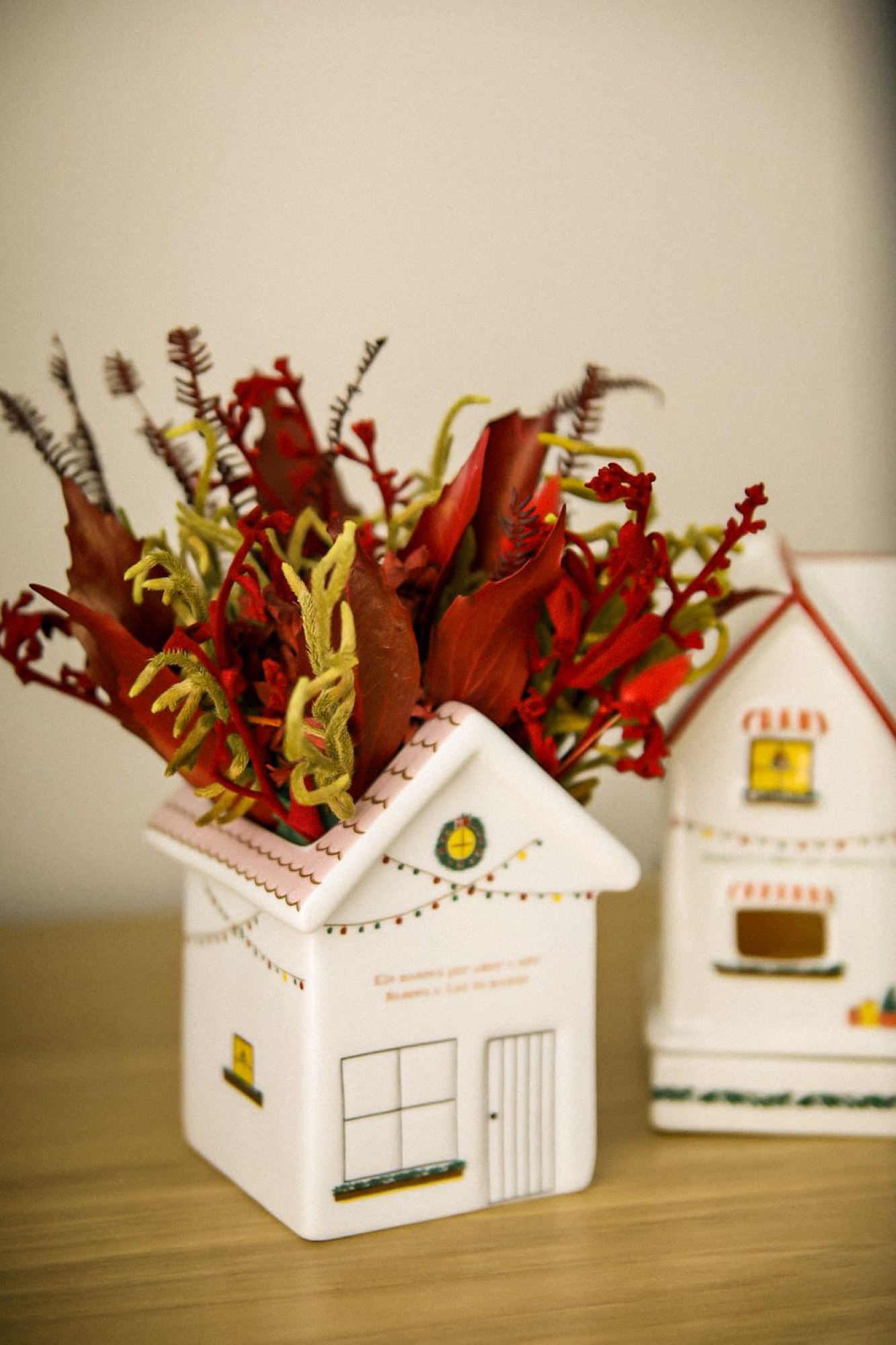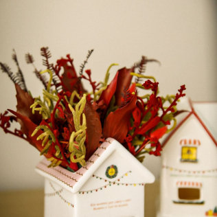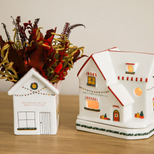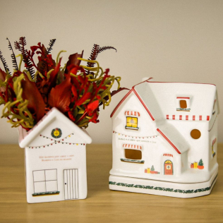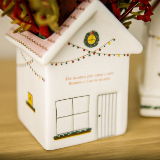 Casinha de porcelana personalizada com frases que remetem ao verdadeiro significado do Natal, acompanhada de um delicado arranjo natalino de flores desidratadas. Uma peça cheia de significado, perfeita para decorar ou presentear com propósito e encanto nesta época tão especial.