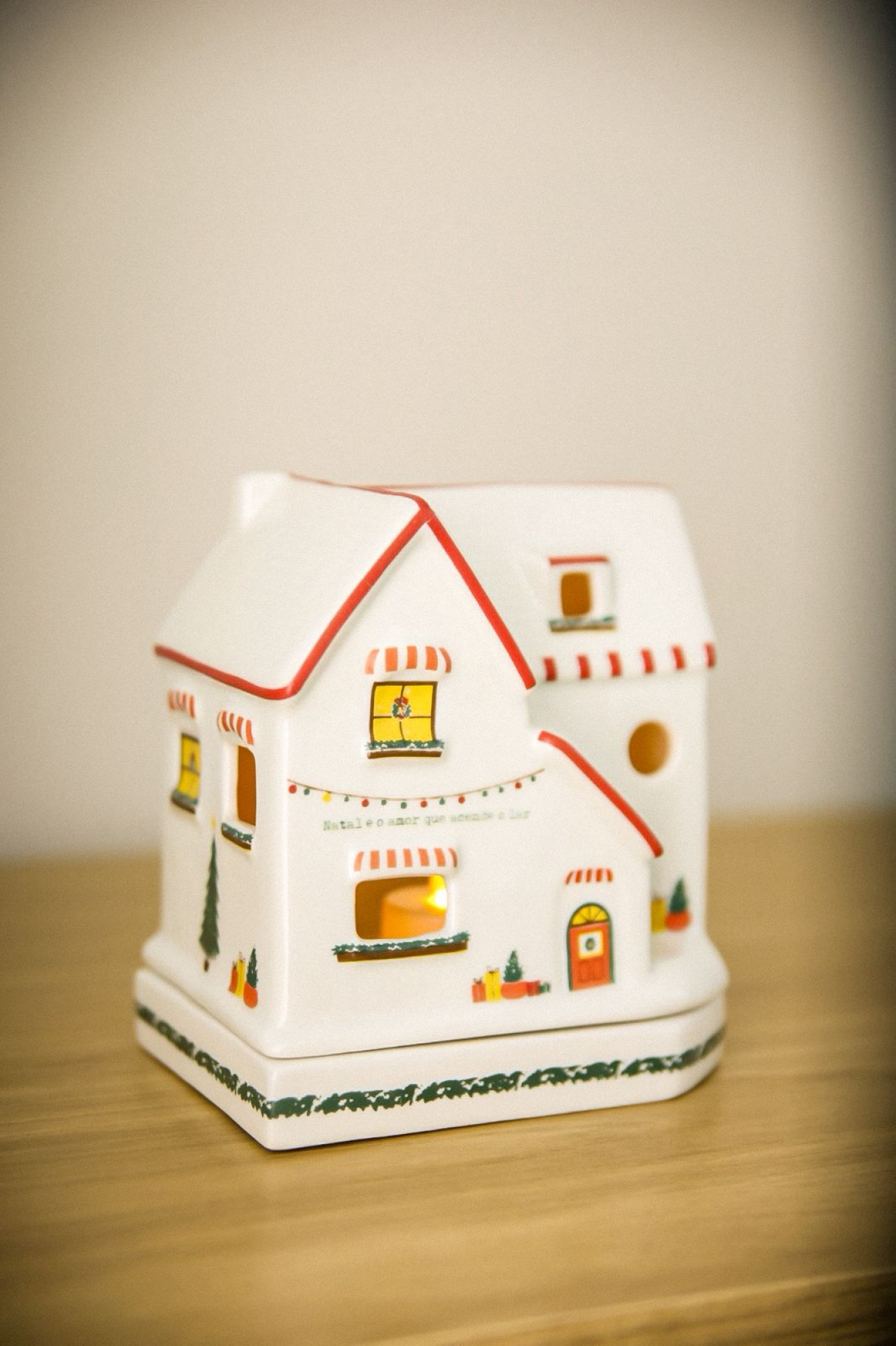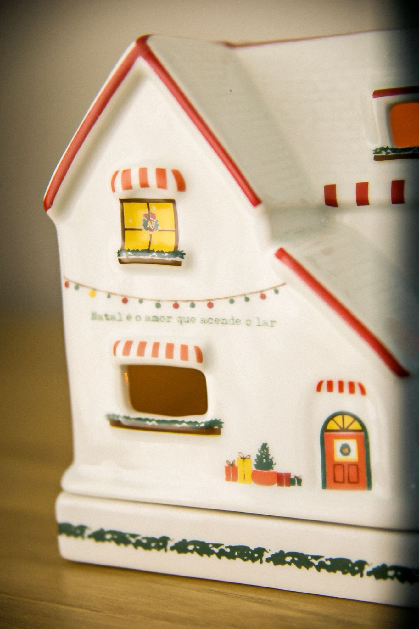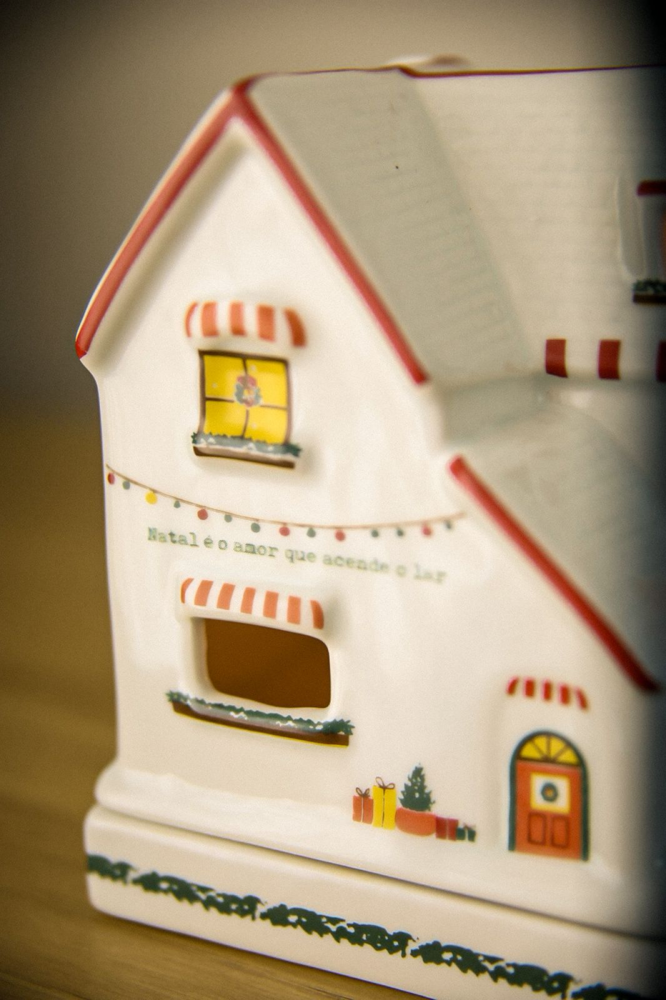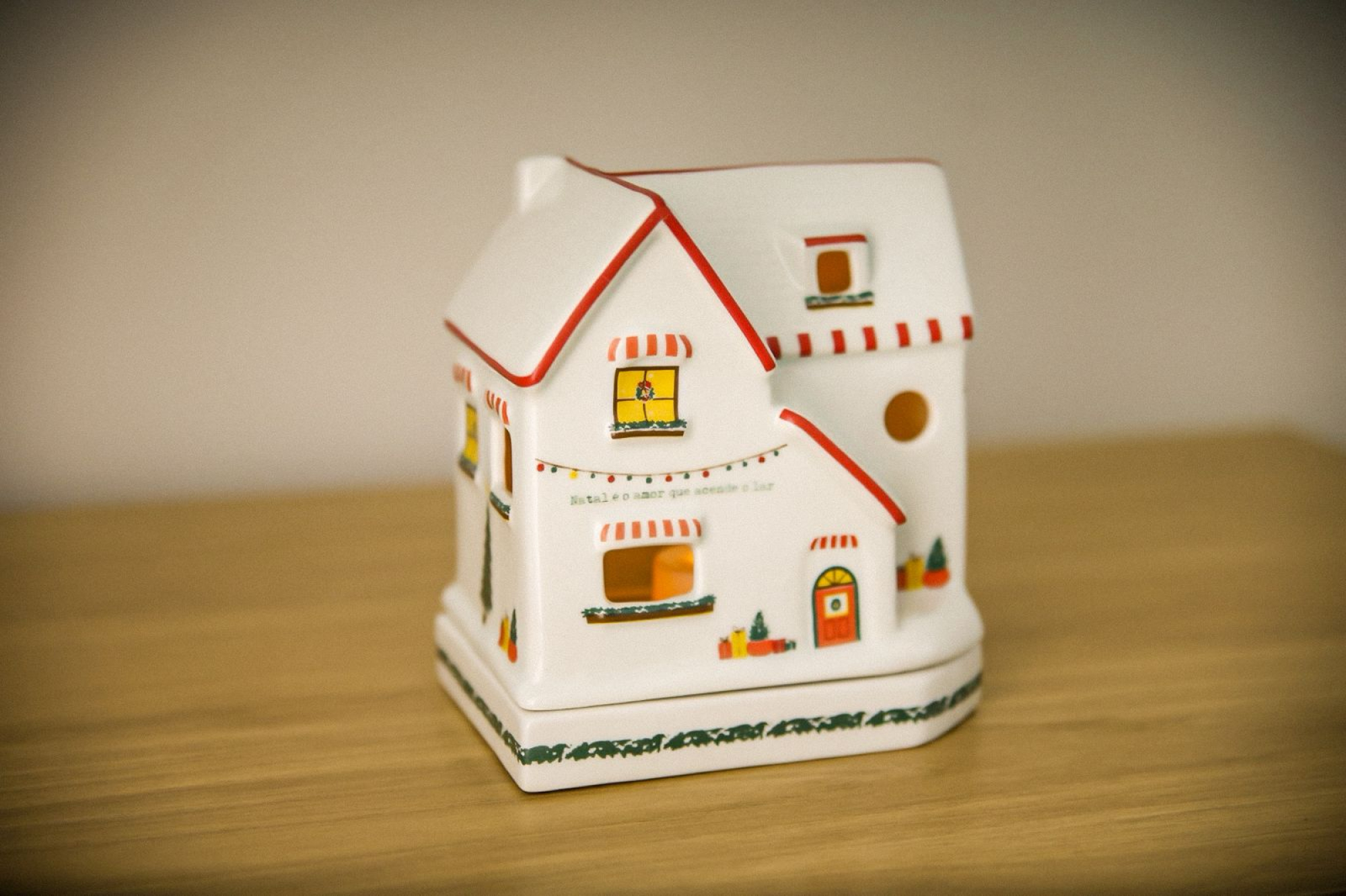 Casinha de porcelana decorativa, com janelas vazadas que permitem a colocação de uma velinhaem seu interior, criando um efeito de luz suave e acolhedor. Com tema natalino, é uma peça que ilumina o ambiente e compõe perfeitamente com a casinha de flores, trazendo ainda mais charme e significado para a decoração de Natal.