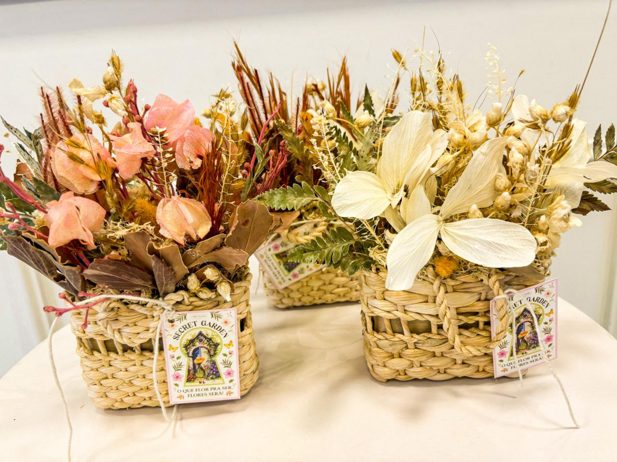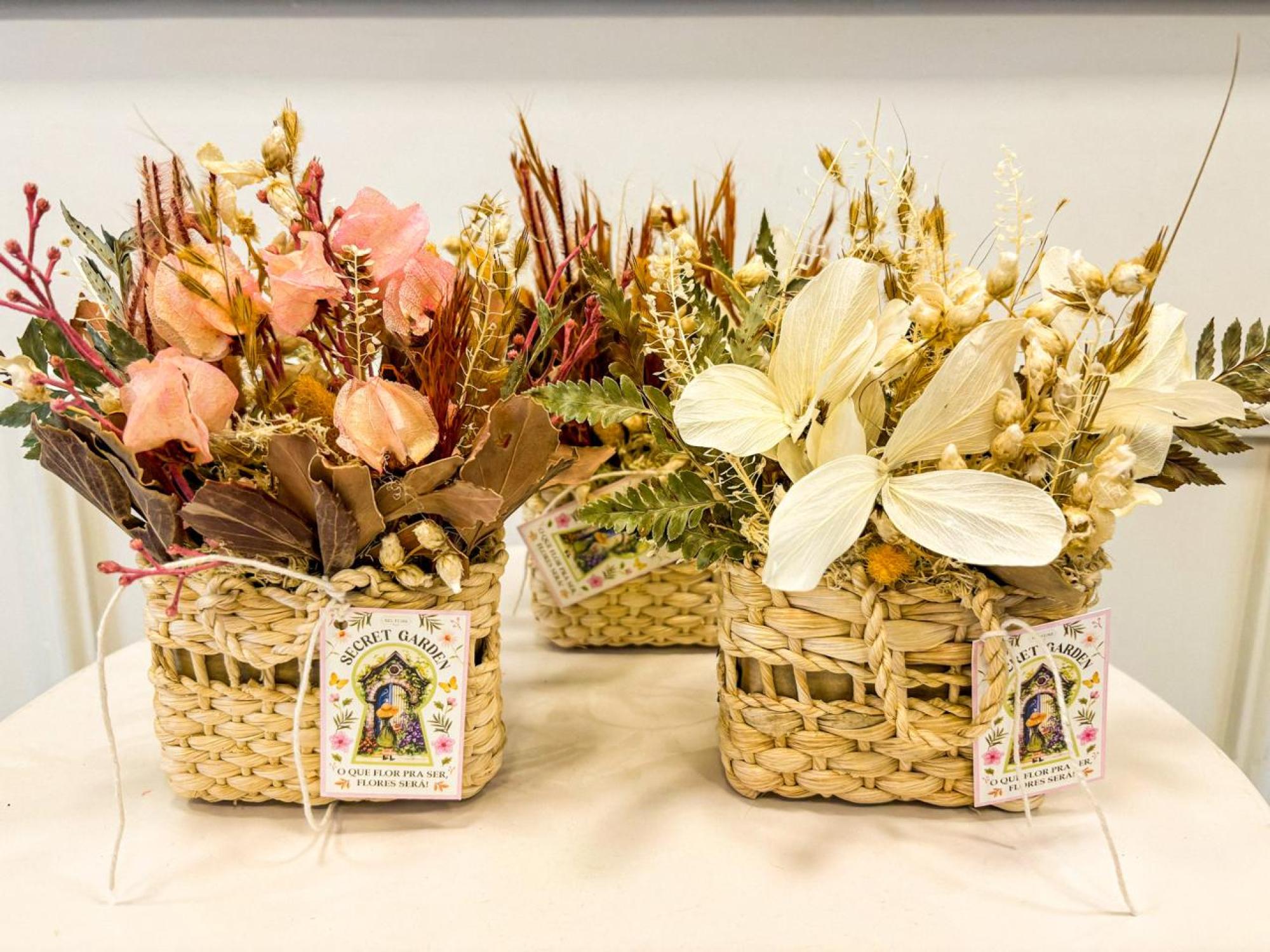 Coleções / Arranjos Desidratados / Mini Cesta de Palha com Arranjo Desidratado