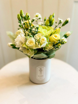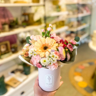 Arranjo de flores na lata Bel Fiore, escolha entre tons alegres ou neutros!