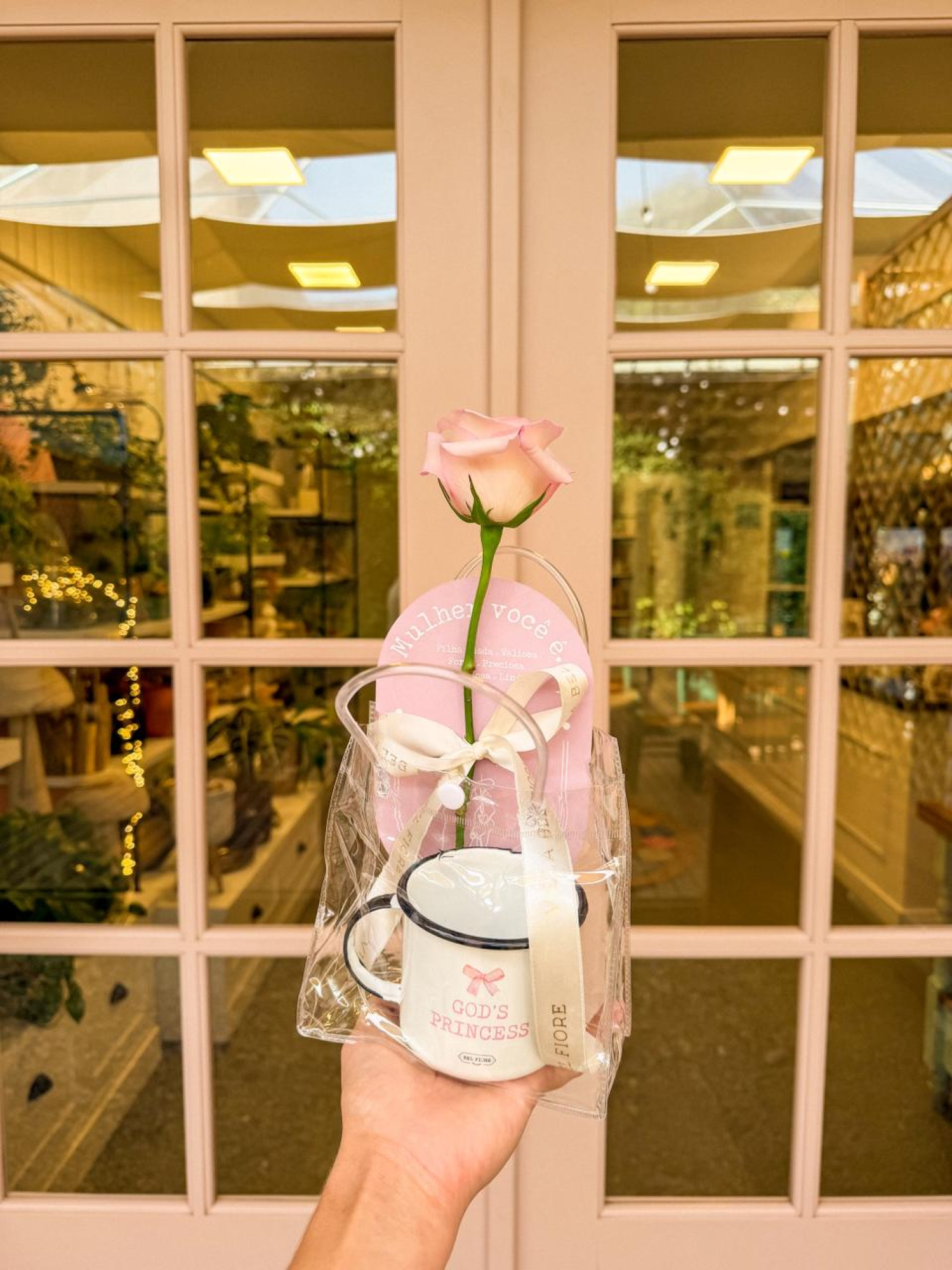 Uma flor e uma caneca esmaltada GODS PRINCESS pra lembrar o quanto ela é AMADA e ESPECIAL!